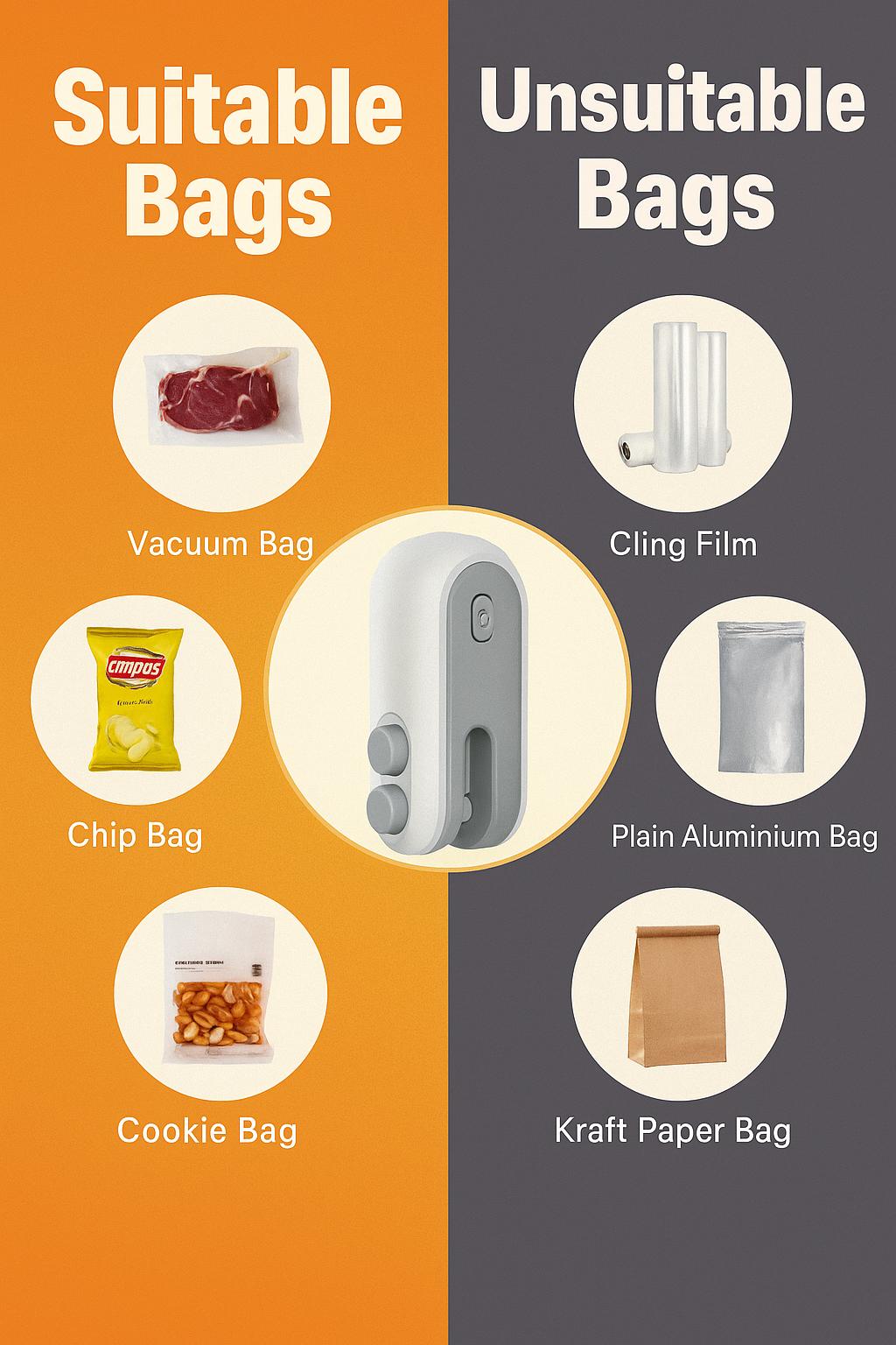 β’ β Not suitable for cling wrap, cellophane, kraft paper, pure aluminum, or very thin bags